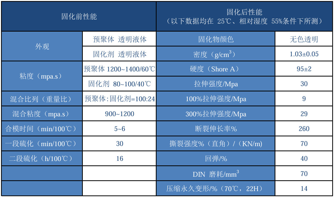 力学性能:优异的动态性能,低压缩变形,高回弹,耐低温性,断裂伸长率方面 仅弱于IPDI型。